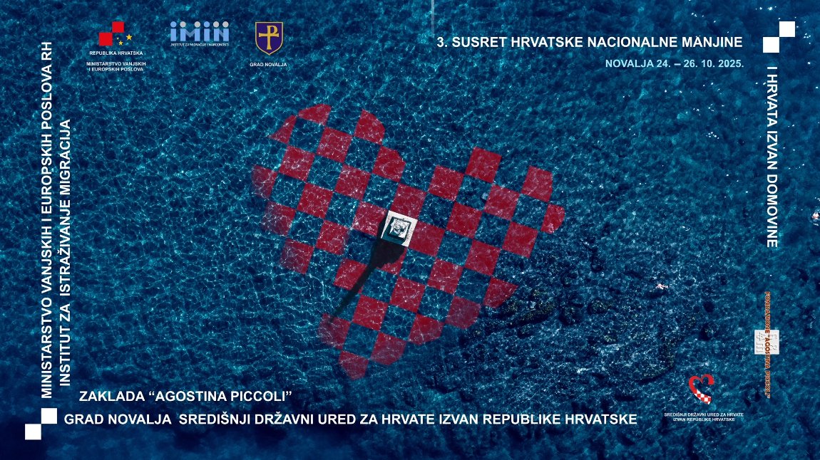 U organizaciji Instituta za istraživanje migracija, Grada Novalje i Zaklade „Agostina Piccoli”, u suorganizaciji Ministarstva vanjskih i europskih poslova Republike Hrvatske te pod pokroviteljstvom Središnjega državnog ureda za Hrvate izvan Republike Hrvatske, održat će se 3. Susret hrvatske nacionalne manjine i Hrvata izvan Domovine od 24. do 26. listopada 2025. u Novalji.
